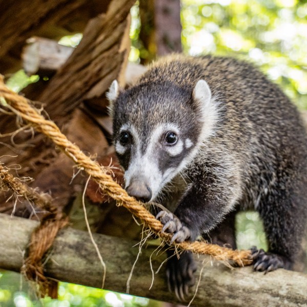 Coatis are excellent climbers. Their long tails help them balance as they move through trees, looking for fruit or a good place to nap.